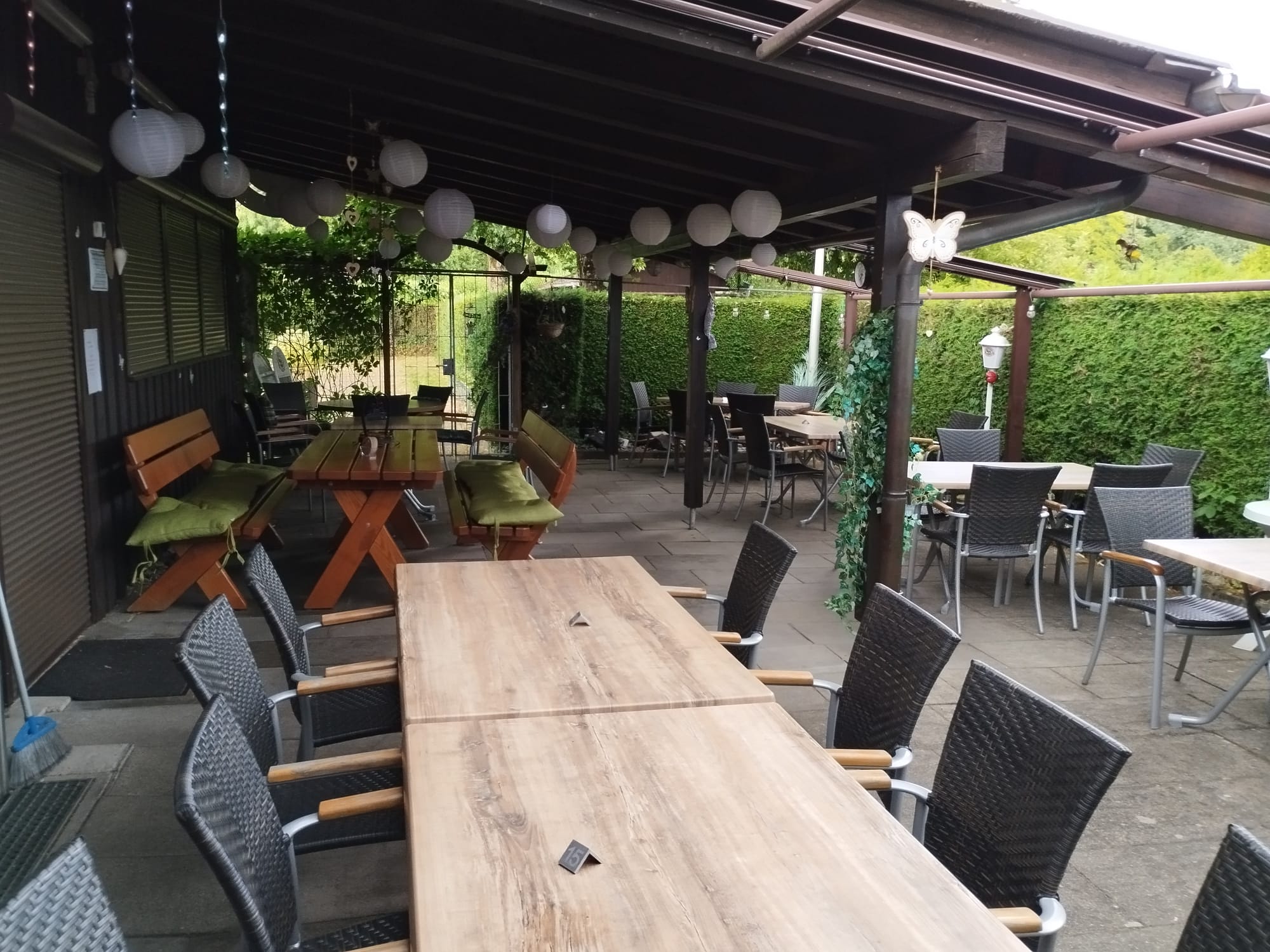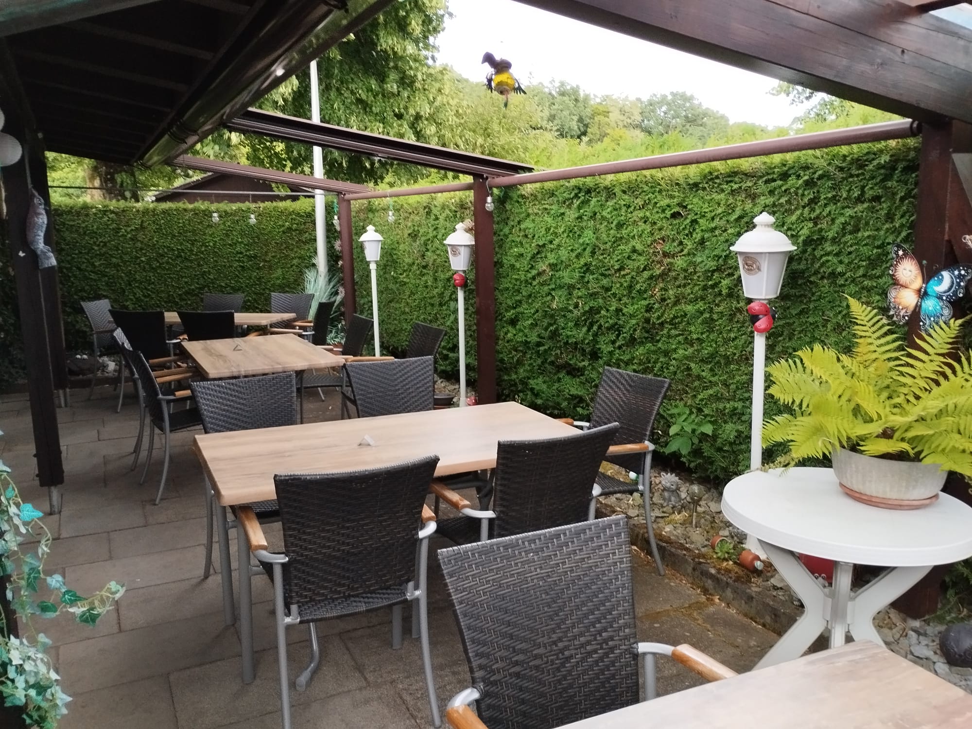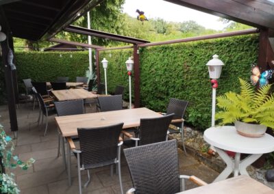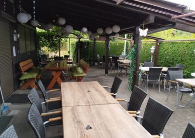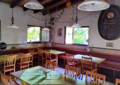 Das Lokal, mit seinem rustikalen Ambiente, hat eine Kapazität von 50 Plätze (inklusive des Stammtisches). Auf die dazu gehörige, überdachte Terrasse, können in den Sommermonaten zusätzlich bis zu 40 Gäste bewirtschaftet werden.